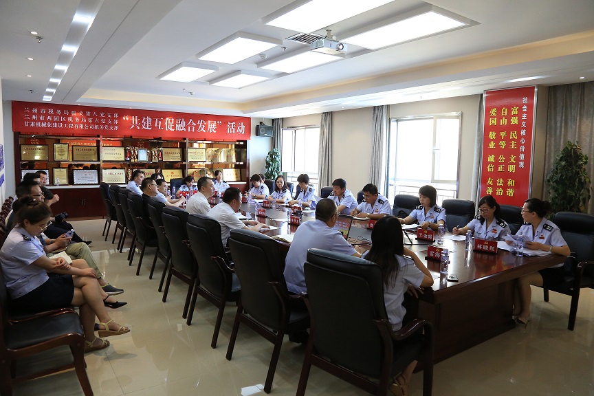 八月的盛夏熱情似火,八月的藍(lán)天明媚無限。在八一建軍節(jié)來臨之際,蘭州市稅務(wù)局第八黨支部、西固區(qū)稅務(wù)局第六支部與公司機(jī)關(guān)黨支部歡聚一堂,召開以“共建互促聚合力,減稅降費(fèi)促發(fā)展”為主題的支部聯(lián)建活動,三個支部的黨員干部以“面對面”坦誠交流的方式實(shí)現(xiàn)了“心對心”的傾心相待!