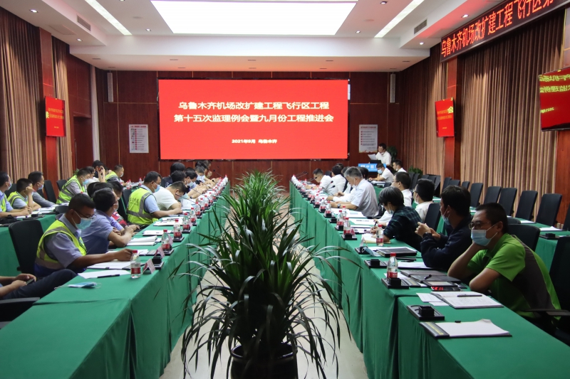 9月3日上午,烏魯木齊國際機(jī)場改擴(kuò)建工程飛行區(qū)第十五次監(jiān)理例會(huì)暨九月份工程推進(jìn)會(huì)順利召開。此次會(huì)議由烏魯木齊臨空開發(fā)建設(shè)投資集團(tuán)有限公司、烏魯木齊國際機(jī)場改擴(kuò)建工程建設(shè)指揮部、烏魯木齊臨空中建機(jī)場建設(shè)運(yùn)營有限公司、8家場道施工單位,3家監(jiān)理單位、2家第三方檢測單位以及相關(guān)參建單位的負(fù)責(zé)人、項(xiàng)目經(jīng)理參加。