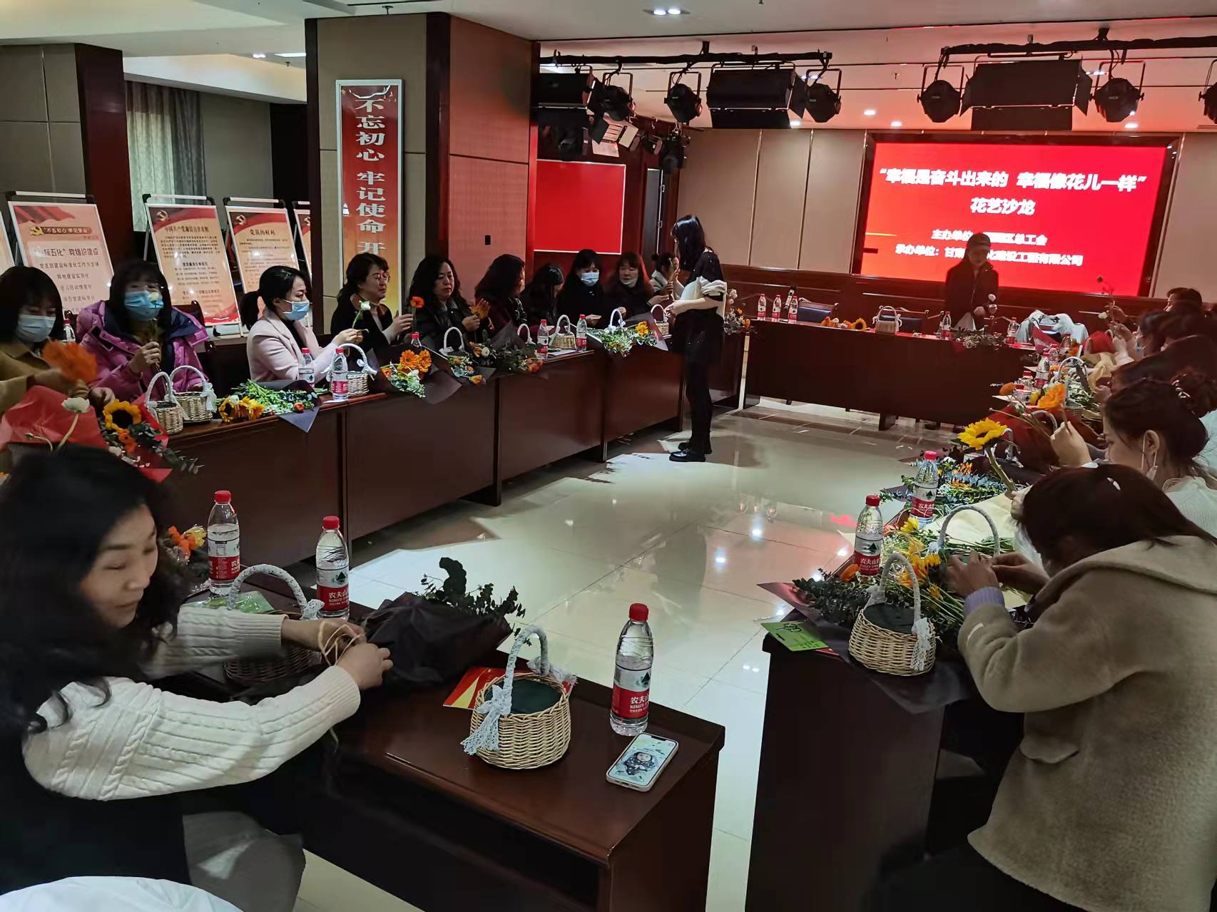 隨后舉行了“幸福是奮斗出來的,幸福像花一樣”花藝沙龍。員工憑借對美的不同理解,把原本普通的花草,經(jīng)過修剪、層次搭配、點綴等步驟,變成了色彩斑斕、獨具匠心的花藝作品。
